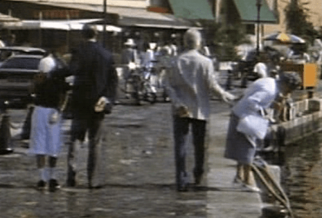 In the theatrical trailer for the 1988 film “Dirty Rotten Scoundrels”, Steve Martin comically pushes a lady into the water. At left, Michael Caine pushes cotton candy into a boy’s face. This second gag is harder to see, and also the first distracts from it.